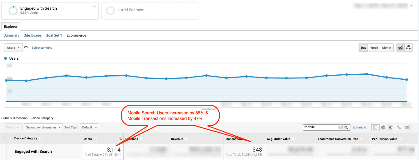3. 16% reduction in search bounce rate and 21% fall in search exits
