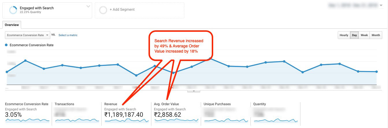 1.18% increase in AOV of search users and 49% growth in search revenue within the first month of going live